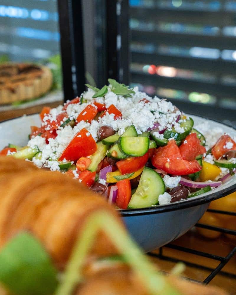 סלט שוק, סלט עלים בויניגרט, סלט יווני, סלט בורגול, סלט שרי–פטריות–בזיליקום.