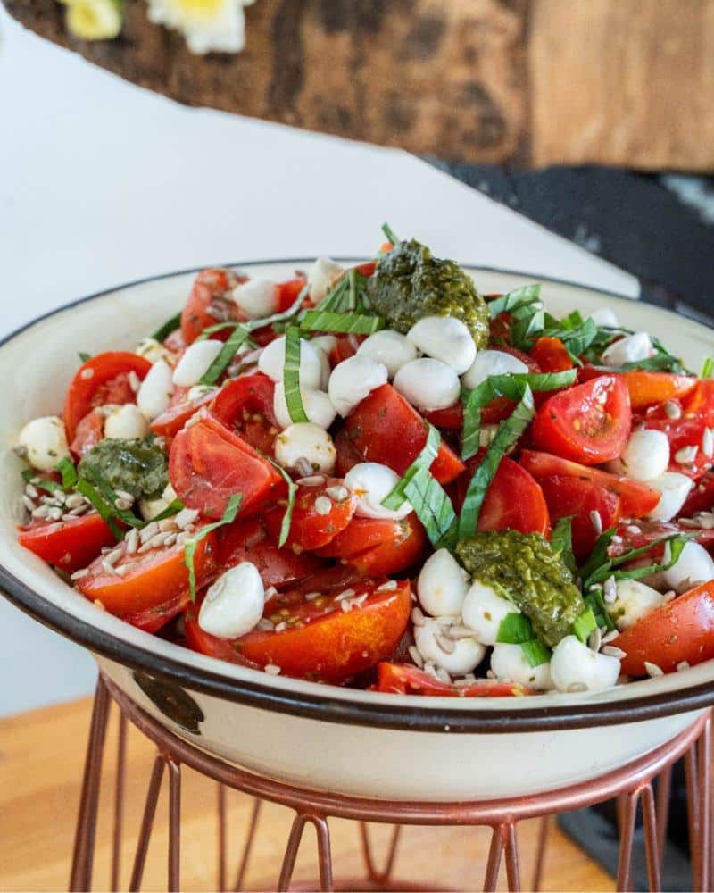 פסטו, טפנד זיתים, עגבניות מיובשות, טחינה.