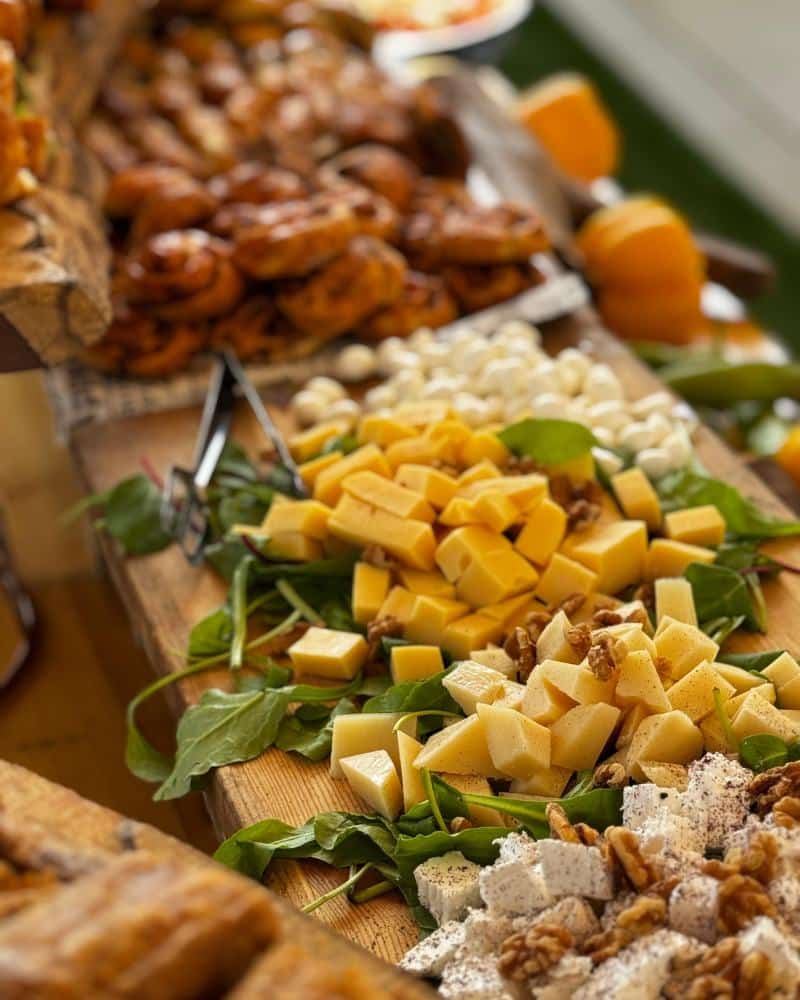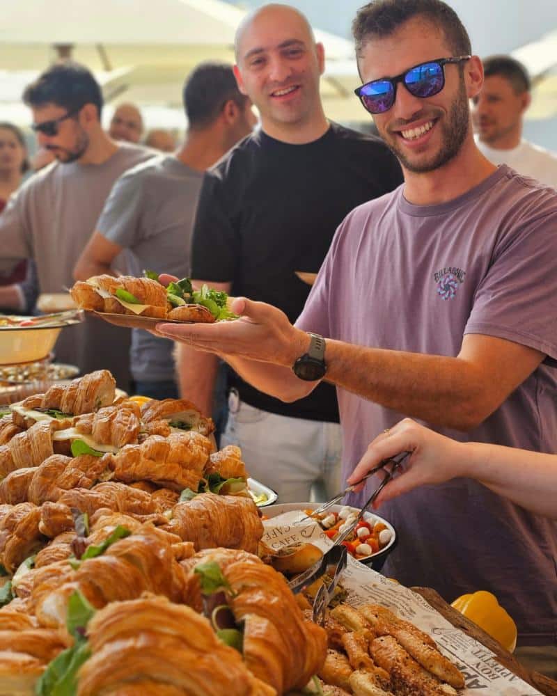 דוכן הבראנץ’ הישראלי של Bite Catering הוא אחד הדוכנים המבוקשים ביותר באירועים עסקיים, ימי גיבוש, ישיבות בוקר ואירועי חברה. השילוב בין מנות חלביות איכותיות, טעמים ישראליים אותנטיים ומראה צבעוני ומגרה יוצר חוויה יוקרתית ומרשימה לכל סוגי הארגונים. הדוכן כולל מגוון עשיר של מנות טריות: שקשוקת הבית בגוון אדום מושלם, בורקסי גבינה עם טאצ’ ישראלי, ג’חנון מקורי כמחווה למטבח התימני, קוראסונים ממולאים בסלמון ובגבינות איכותיות, קישים במגוון טעמים ועוד.
